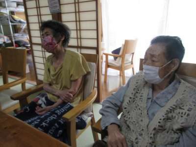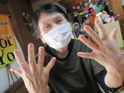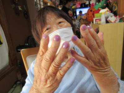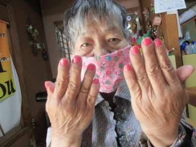 「今日は、マスクに合わせてピンクの色がいいわ」とオシャレな母