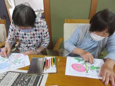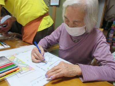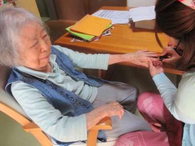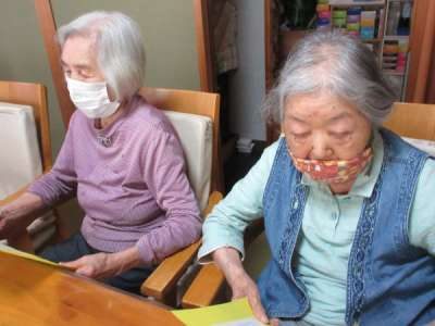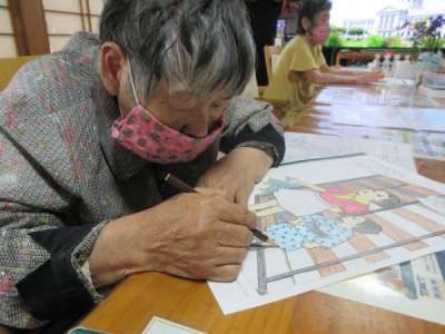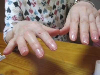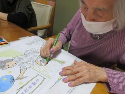 ネイルが終わった母は、カレンダー作りの続きに夢中です