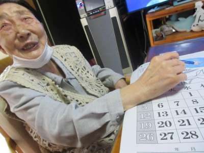 順番待ちの母は、カレンダー作りに励みます