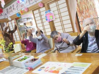 ぼけたらあかんを唱和した後、歌謡体操で身体を動かし