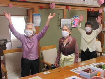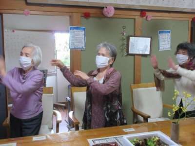 ました走る人幸せの幸望庵では、こうして1日3回歌謡体操を