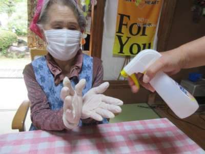 アルコール消毒、しっかり手にすりこみます手 (パー)手 (パー)手 (パー)