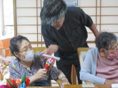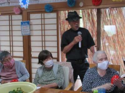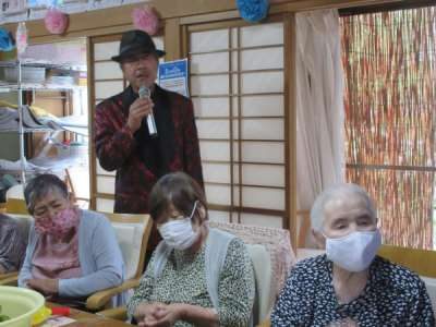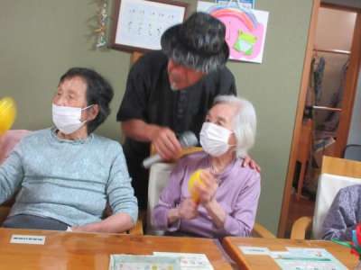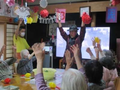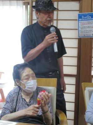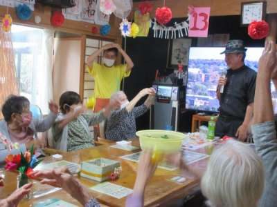 肩周りの体操を兼ねて、右から左と持ち手を変えて行いました