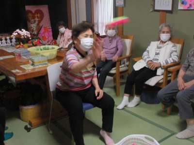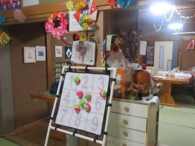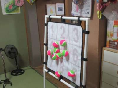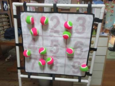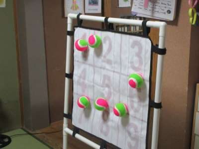 的に向けて、ボールを投げて点数やビンゴを狙うゲームです手 (パー)