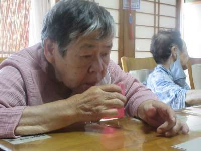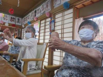 レクが始まるとお手玉を落とさないよう