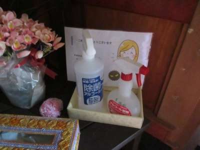 玄関先にも、アルコールを置いて、洋服用と手と分けています手 (チョキ)