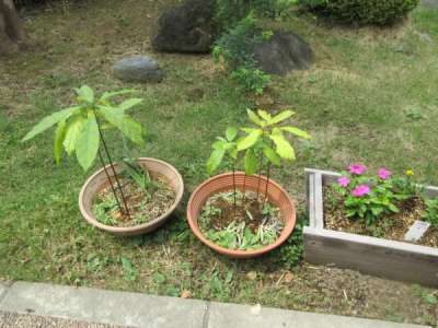 右斜め上ニョキニョキと成長が著しいのは、アボカドの木です