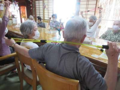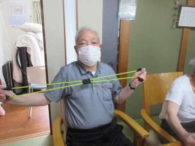 朝会が終わり、本日のレクはゴム体操です走る人走る人走る人