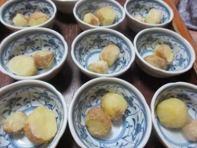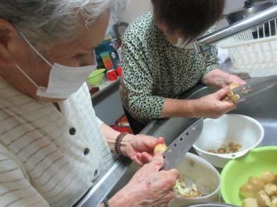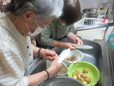 早速幸せの母達がじゃが芋を綺麗に洗い