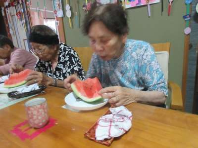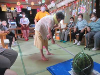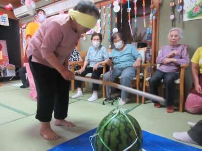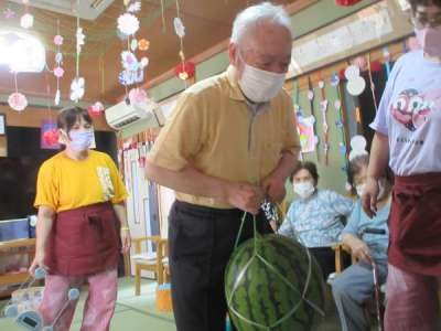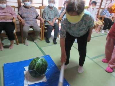 母は少し🍉に棒が当たり喜んでいました