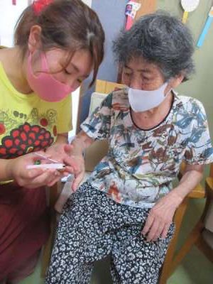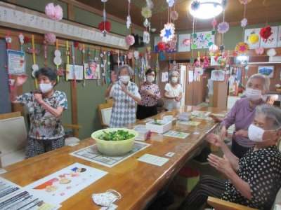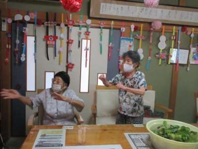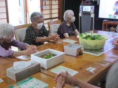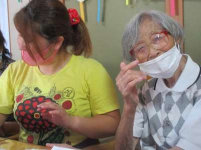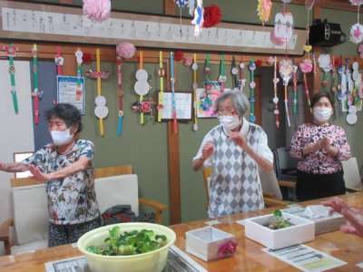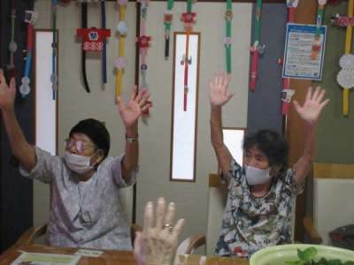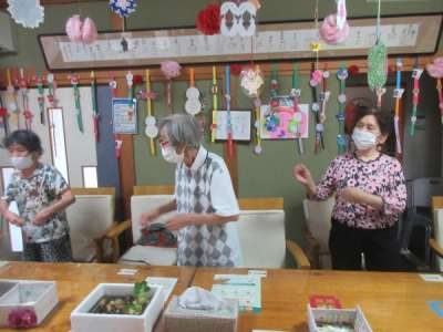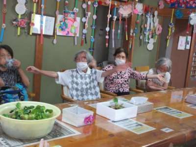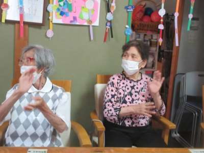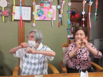 歌謡体操では懐かしの歌に合わせて体を動かします