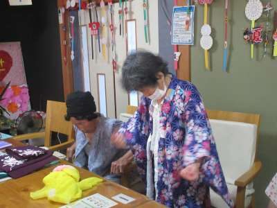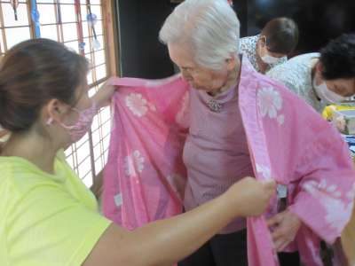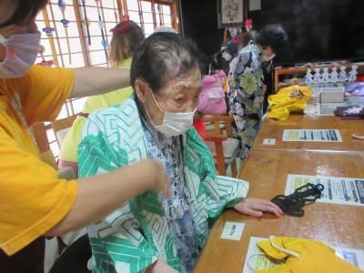 スタッフ総出で、着付け教室に早変わりですダッシュ (走り出すさま)ダッシュ (走り出すさま)ダッシュ (走り出すさま)ダッシュ (走り出すさま)