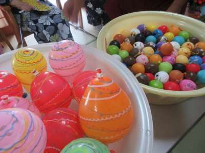 ヨーヨーすくいも、ほらっ   おてのものです手 (パー)
