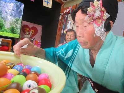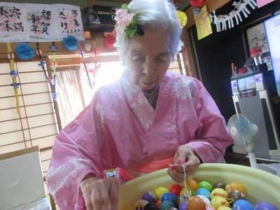 順番にくじを引いて、公平に浴衣を選択します。
