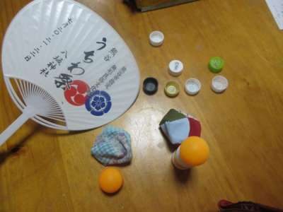 お手玉は重さが違うので軽いとうちわがしなりませんね