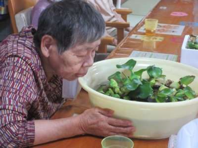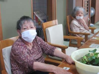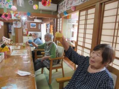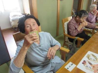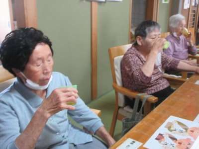 午後レクに入る前に、豆乳バナナジュースでリフレッシュ