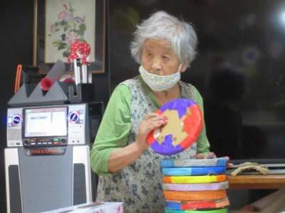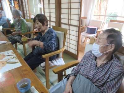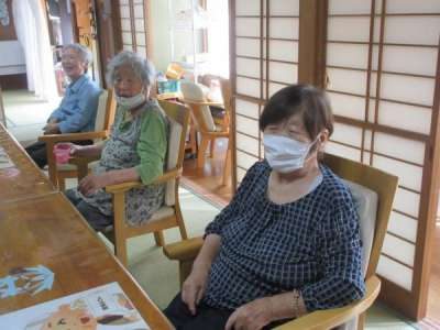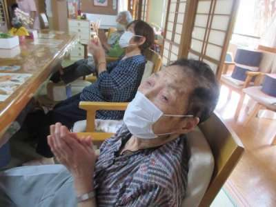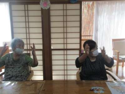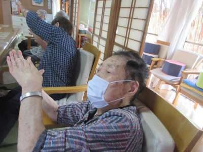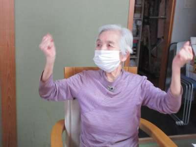 幸せの幸望庵では、一日3回こうして、歌謡体操で身体を