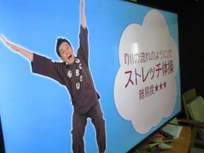 テレビ画面を見ながら、皆様、しっかりと身体を
