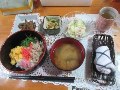 (たまご そぼろ 桜でんぶ いんげん 紅ショウガ)