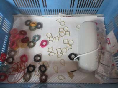 左から、手芸ヒモ、フレーム、UVライト照射機、