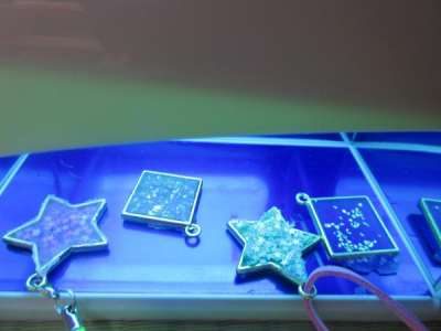 その後、UVライトを照射して、レジン液を固めていき