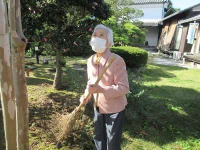 落ち葉が綺麗に舞っていたので母が箒をもって