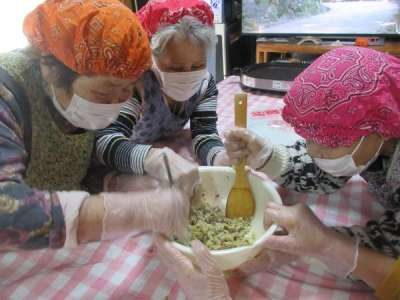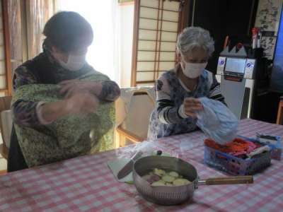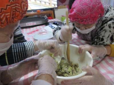出来上がった薩摩芋もちを、美味しい 美味しい・・・と