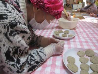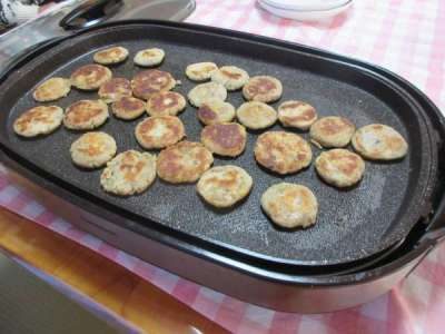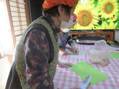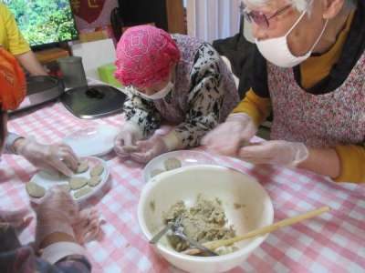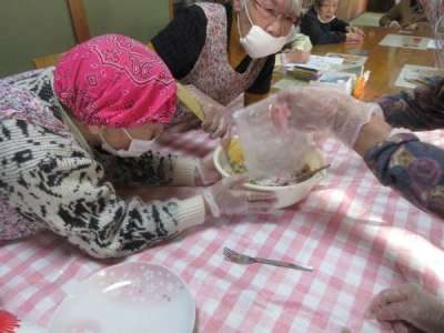 片栗粉を混ぜたさつまいもをこねて、丸めていきます
