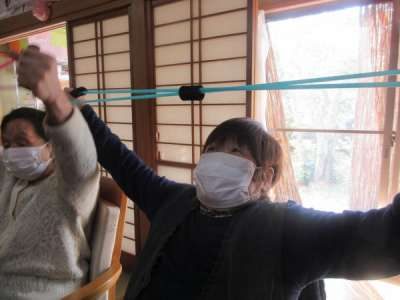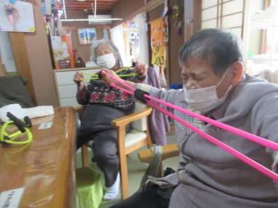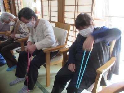 下肢の方も、しっかりとゴム体操を行っていきますリサイクル