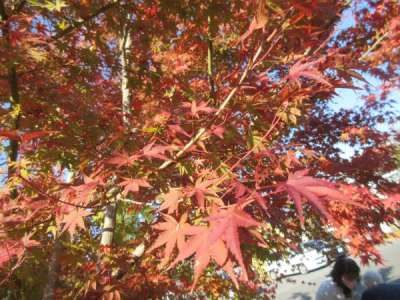 葉っぱが赤く紅葉していて、