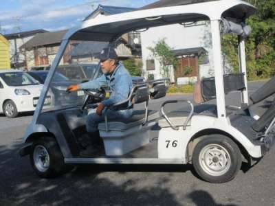せっかくだから、カートで庭を案内します