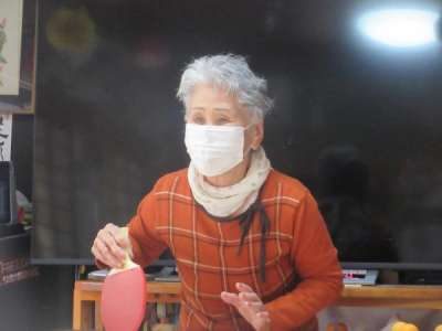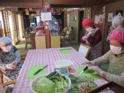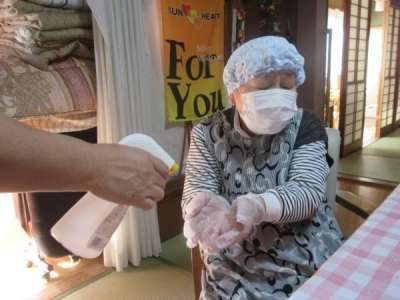 まずは、エプロン、三角頭巾、ゴム手袋を着用します