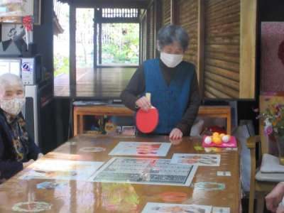 卓球用ラケットと卓球ボールを使って、ゲームをしま