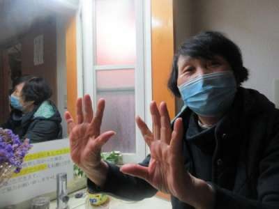 はーい手 (パー)手 (パー)手が綺麗になりましたうれしい顔