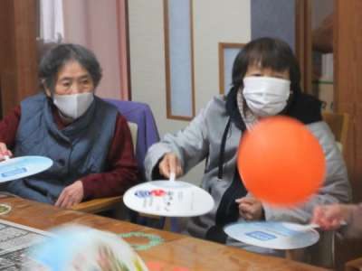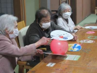 風船はフワフワ浮いてしまうので、うちわからポロっと