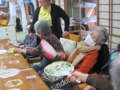 うちわリレー始める前に、うちわでリズムをとりながら、