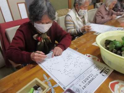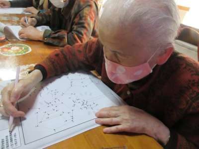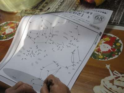 点つなぎで点を結んだところ、杖をついたおじいさんの