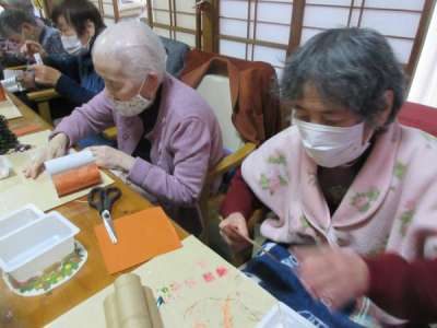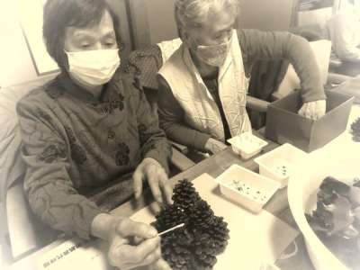 母はビ-ズを選んでから糊をつけます
