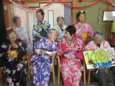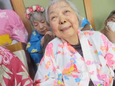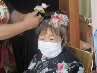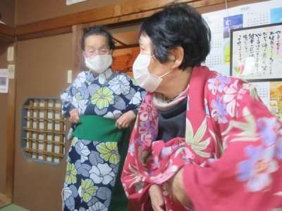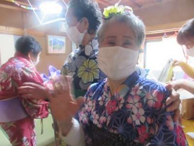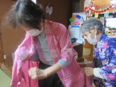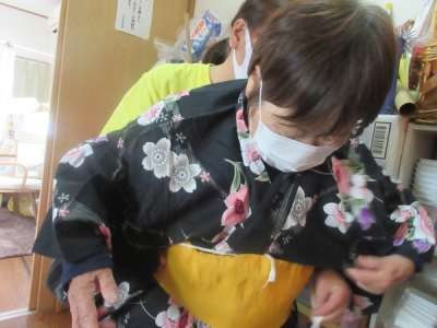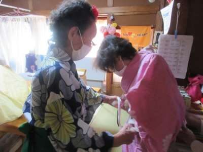 浴衣を着るのは一人では大変なので、全員で協力しあって