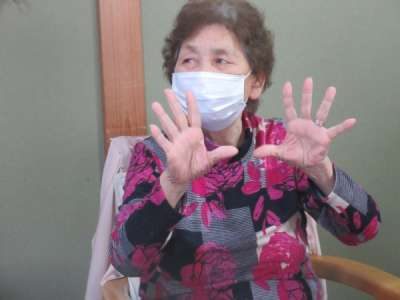 グー、チョキ、パーを順番にだす体操&脳トレですほっとした顔