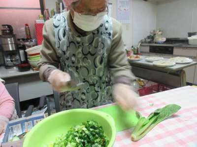 味噌汁に入れる具材を切っていきます