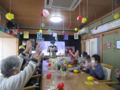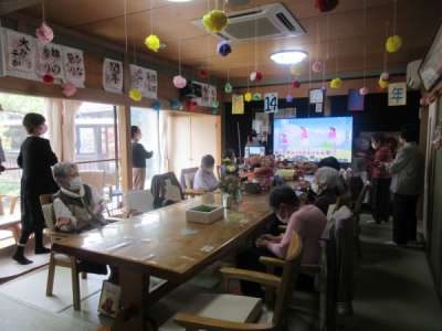 昼食後、機能訓練をかねて、みんなで仲良く散歩へ