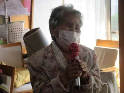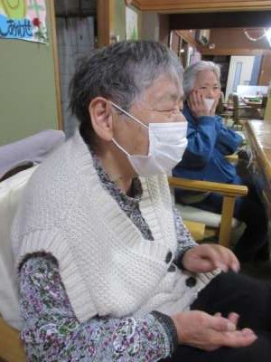 日付確認、あいうべ体操、そして歌謡体操を行った後、