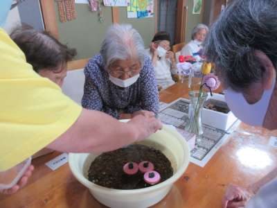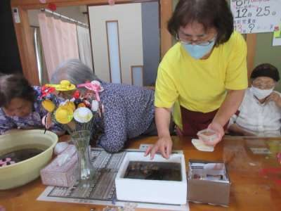 奥に潜んでいたメダカさん達がわぁーと浮き上がってきました。