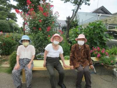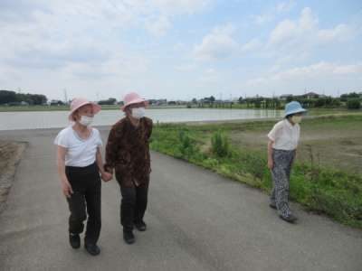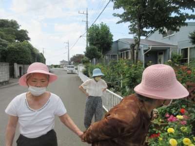 昼食後、機能訓練で散歩に行きましたうまい! (顔)