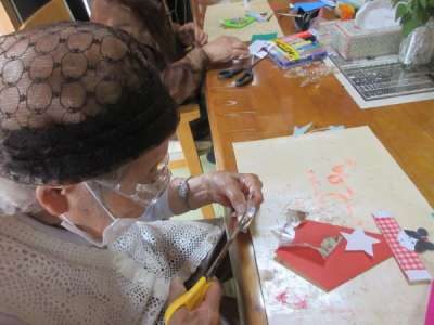 ハサミを使って、折り紙を丁寧に切っていきます美容院 (鋏)
