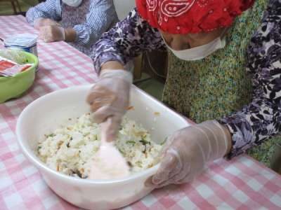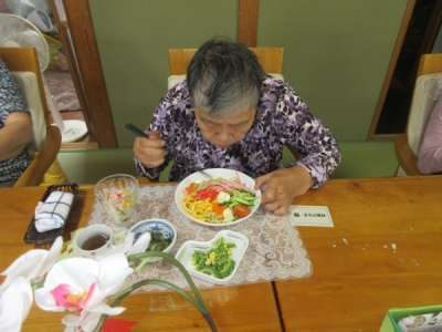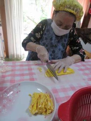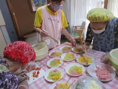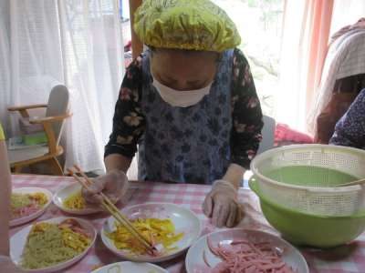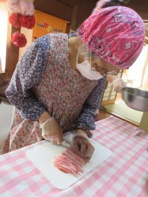 皆様、一生懸命に切り、盛り付けも行ってくれました