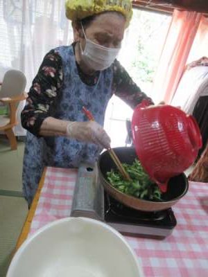 ゴーヤを炒めて、ゴーヤチャンプルを作っていきます