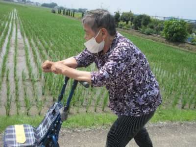 田植えが終わったばかりの田んぼの隣を通っていきます