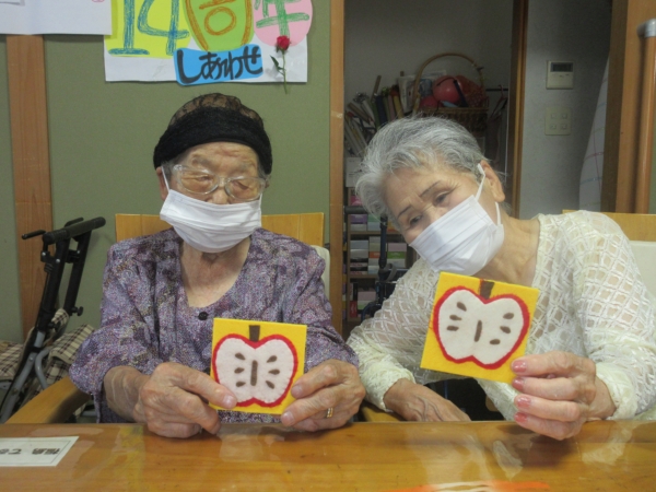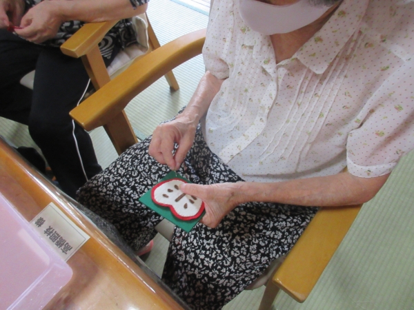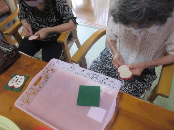 母二人は黄色の型紙に🍎を合わせました